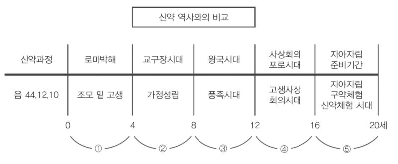 - 구약 때 이스라엘 민족이 수백 년간 이집트에서 갖은 고생할 때와 신약 때 출발부터 어렵게 시작해 로마제국의 박해로 순교가 이어지던 300~400년 시기와 일치하고,